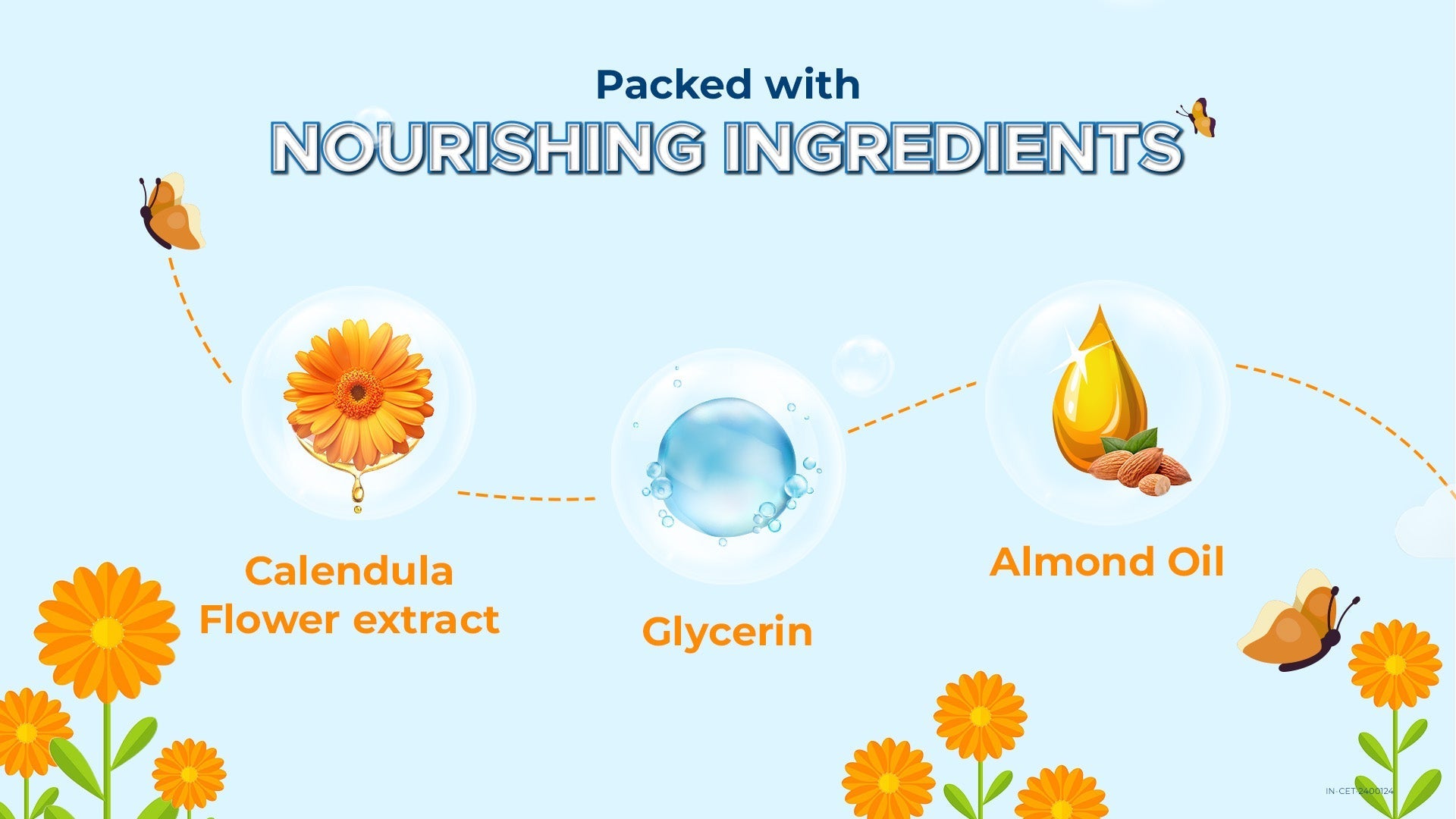 Enriched with natural ingredients Calendula Flower, Sunflower Oil, Almond Oil, Glycerin